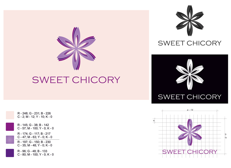Логотип для швейной компании Sweet Chicory был разработан с использованием образа одноименного цветка цикория. Вдохновением для дизайна послужили резные лепестки этого цветка и его нежная цветовая палитра, состоящая из оттенков сиреневого и фиолетового.